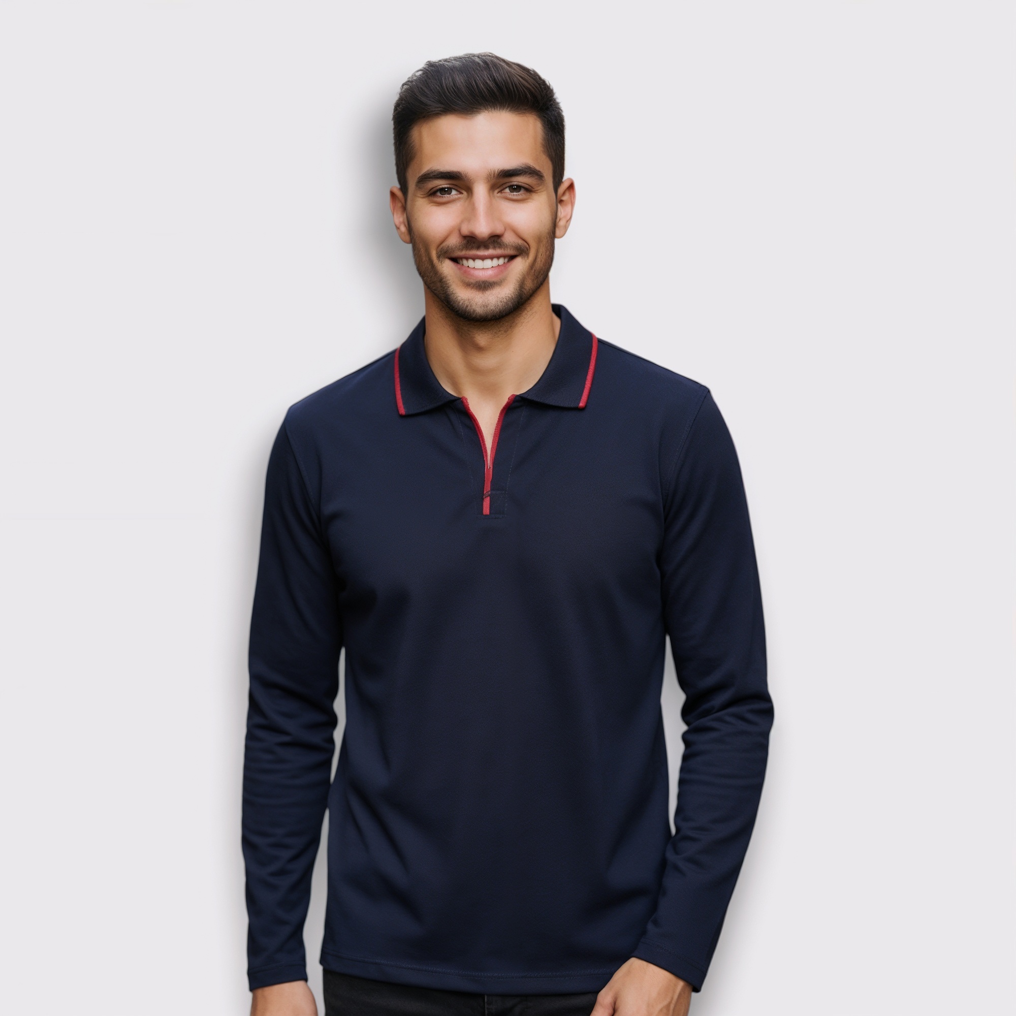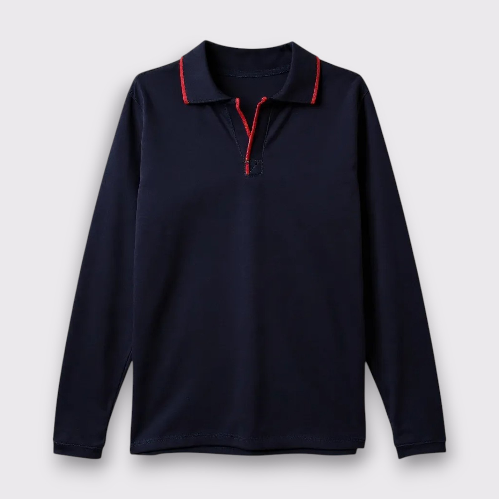 Comodidad y estilo se combinan en esta playera de manga larga. Su tela suave y ligero se adapta al cuerpo, brindando libertad de movimiento y una sensación agradable al contacto con la piel. El cuello tipo polo con latilla de tejido añade un detalle moderno y elegante, mientras que el corte regular asegura un ajuste perfecto para cualquier ocasión, desde un día casual hasta un look semiformal.